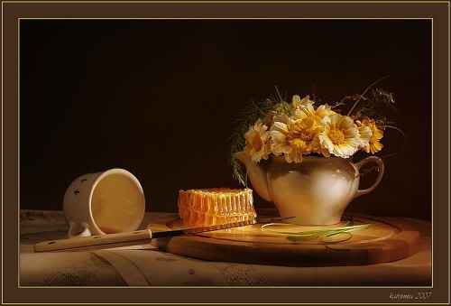Ой=) А вот это рядом с чайником - это мед в сотах?